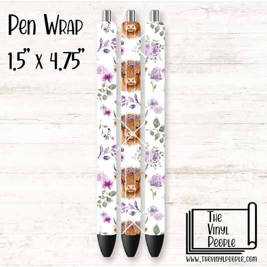 Highland Cow Purple Floral Pen Wrap